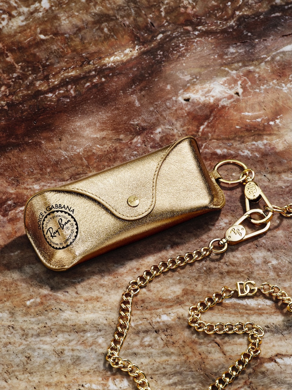 Both styles come stamped with dual Dolce & Gabbana and Ray-Ban branding with an exclusive leather and gold-tone case doubling as an accessory. Complete with straps, carabiners, and Dolce & Gabbana’s signature detailing, they’re designed to clip onto bags, belts, really anything that could turn storage into styling.