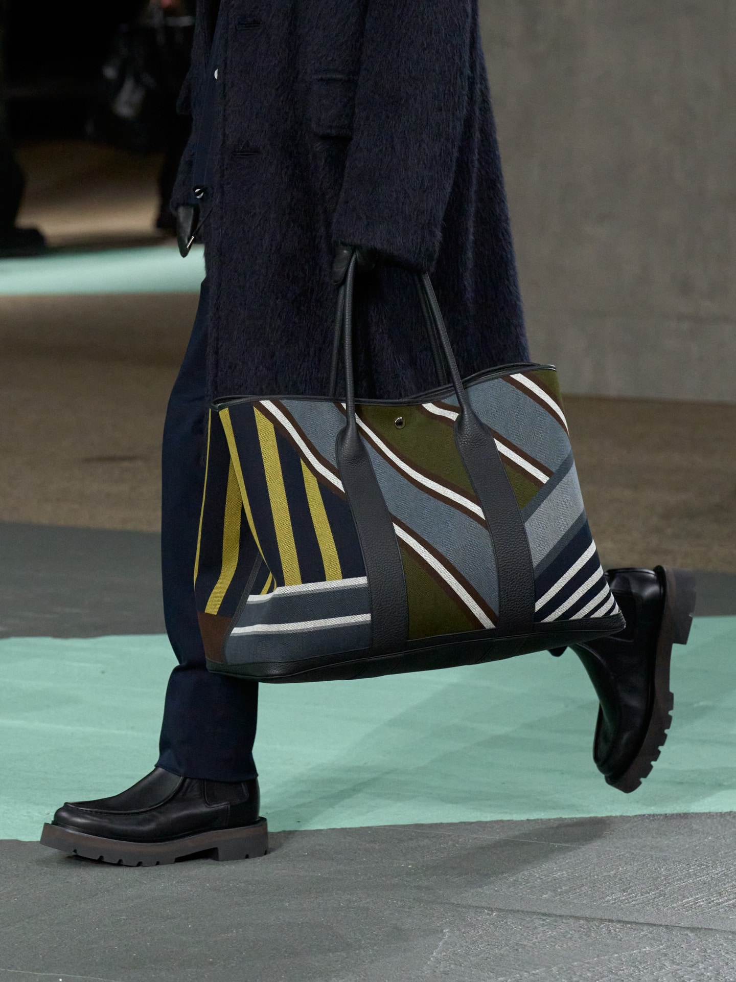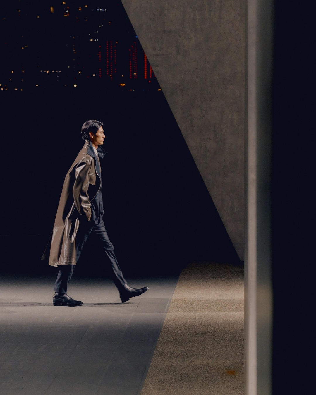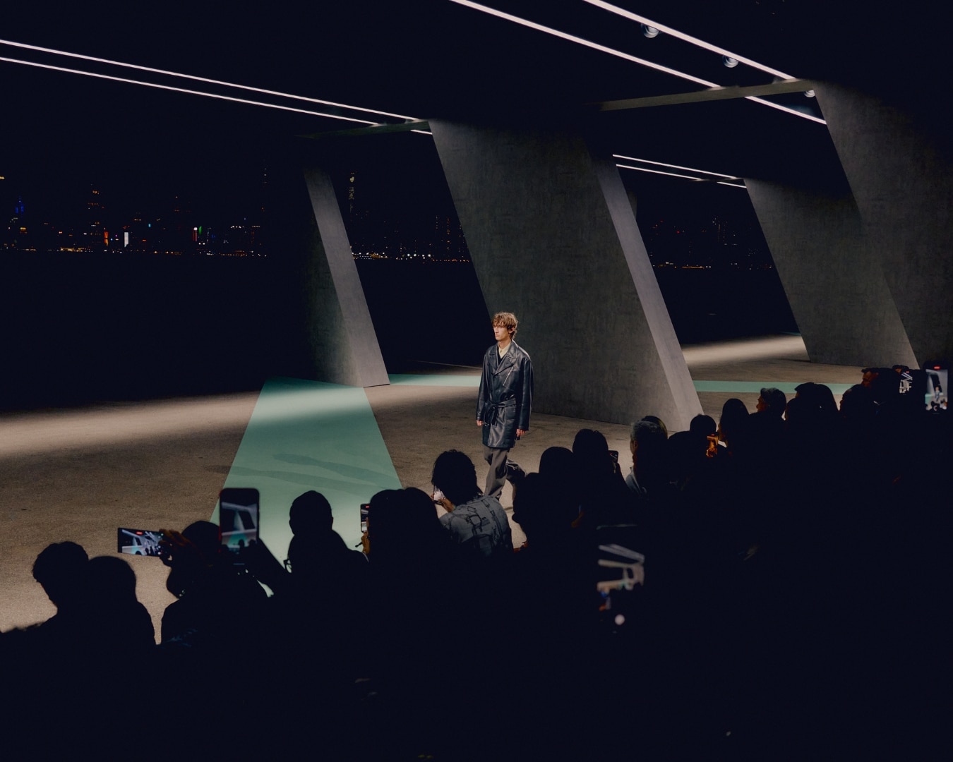 On the runway, sharp met soft and shape met crispness, the cleanly lined backdrop of Kai Tak providing a brutalistically suitable relief against which to observe the urban dynamic of men’s style moving with disciplined informality.