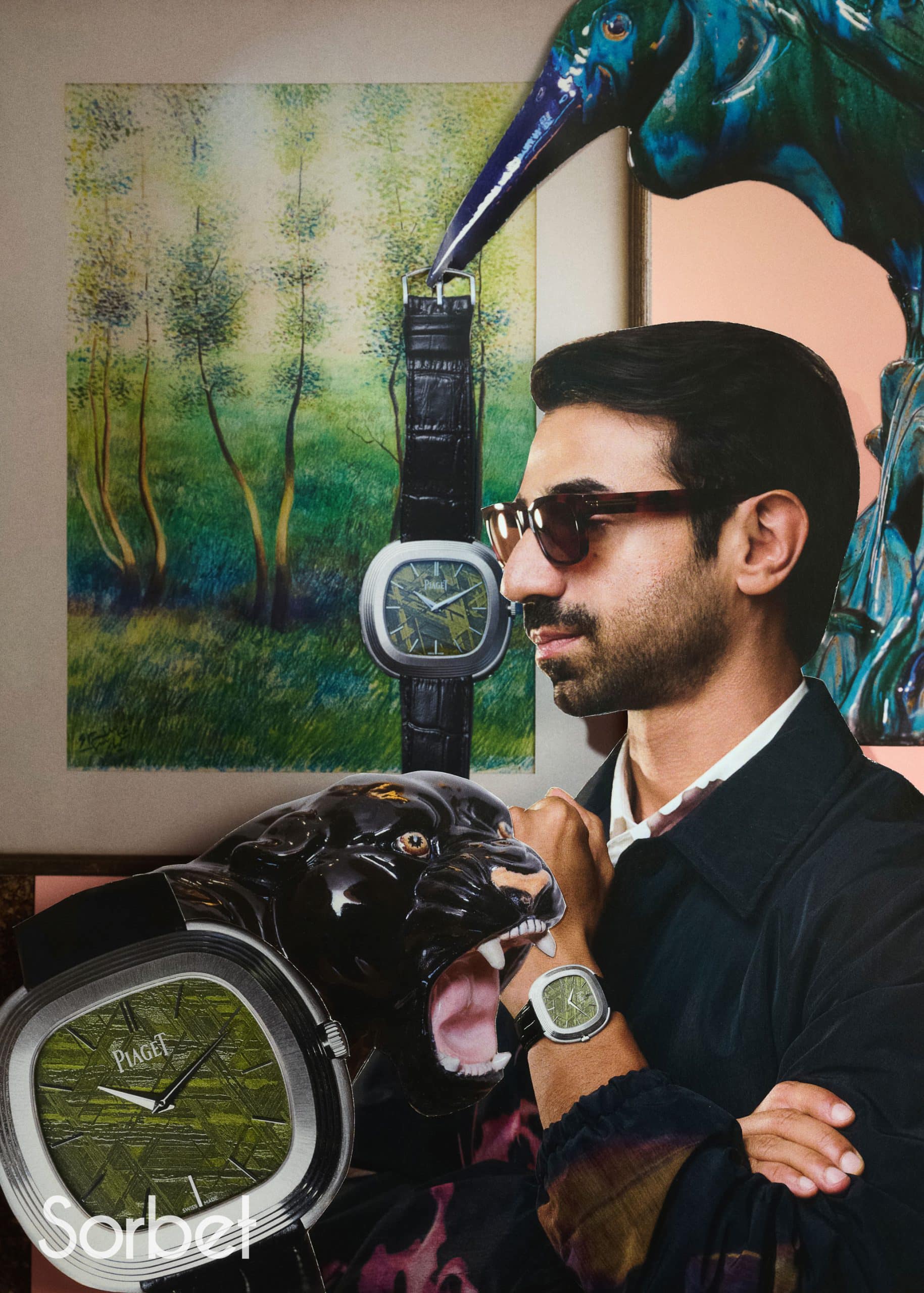In filmmaker Abdulla Alkaabi's villa, where art and sculpture occupy every space and surface, Piaget's Warholian watches gleam among the canvases and curiosities. All captured and collaged by Abdulla Elmaz and Jhenyfy Muller in homage to Andy, the pop-art icon.
