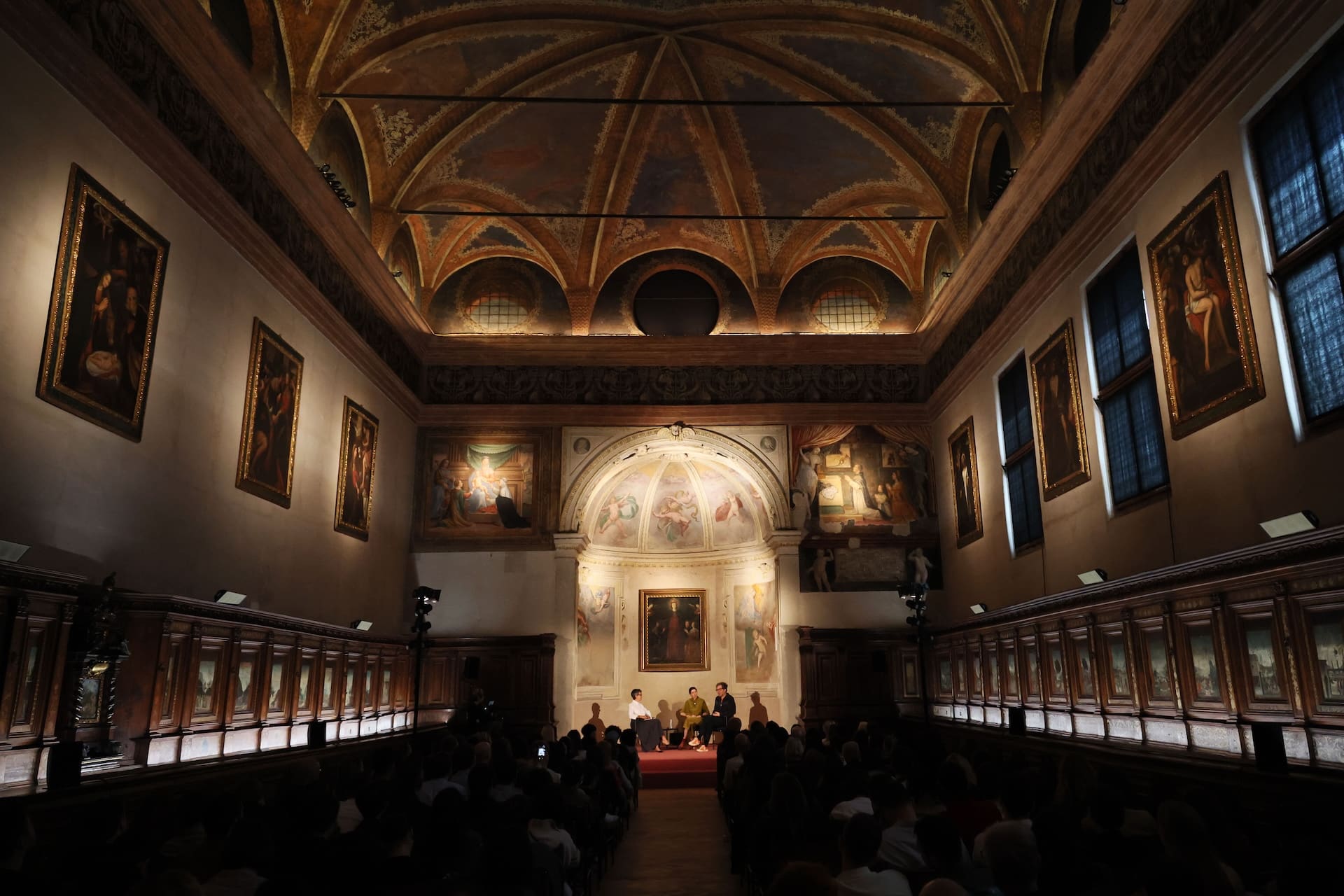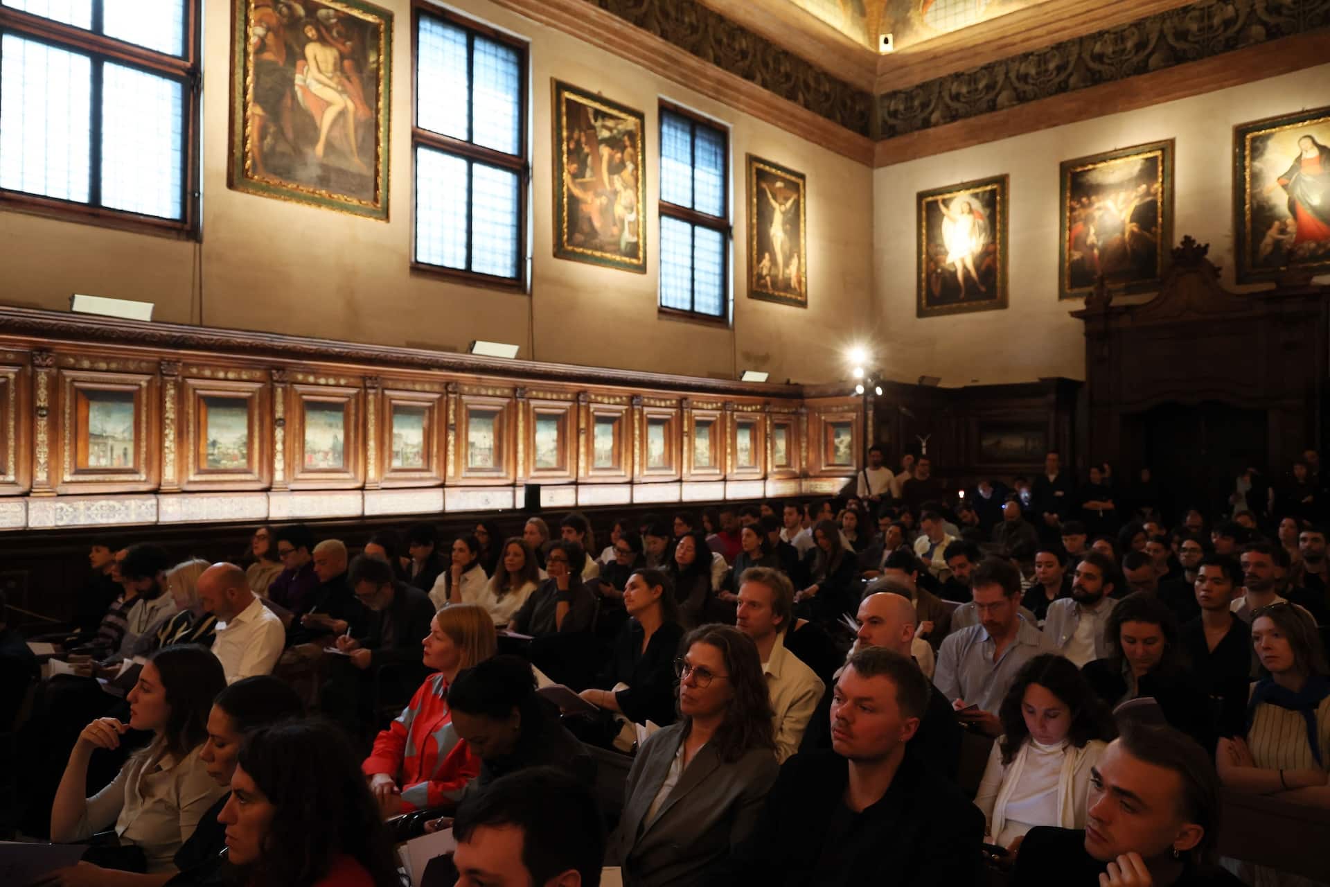 Inside the grandeur of Santa Maria delle Grazie – arguably no better place to discuss visuals than one housing some of the most extraordinary imagery in the world — and with a backdrop of renaissance woodwork and biblical inlays juxtapose conversations about machine-generated imagery, human doctoring, and how design, culture and society converge in the space. In between the talks around historical frameworks is a realization that every age has its illusions – only now they’re pixelated, algorithmic, and endlessly scrollable.