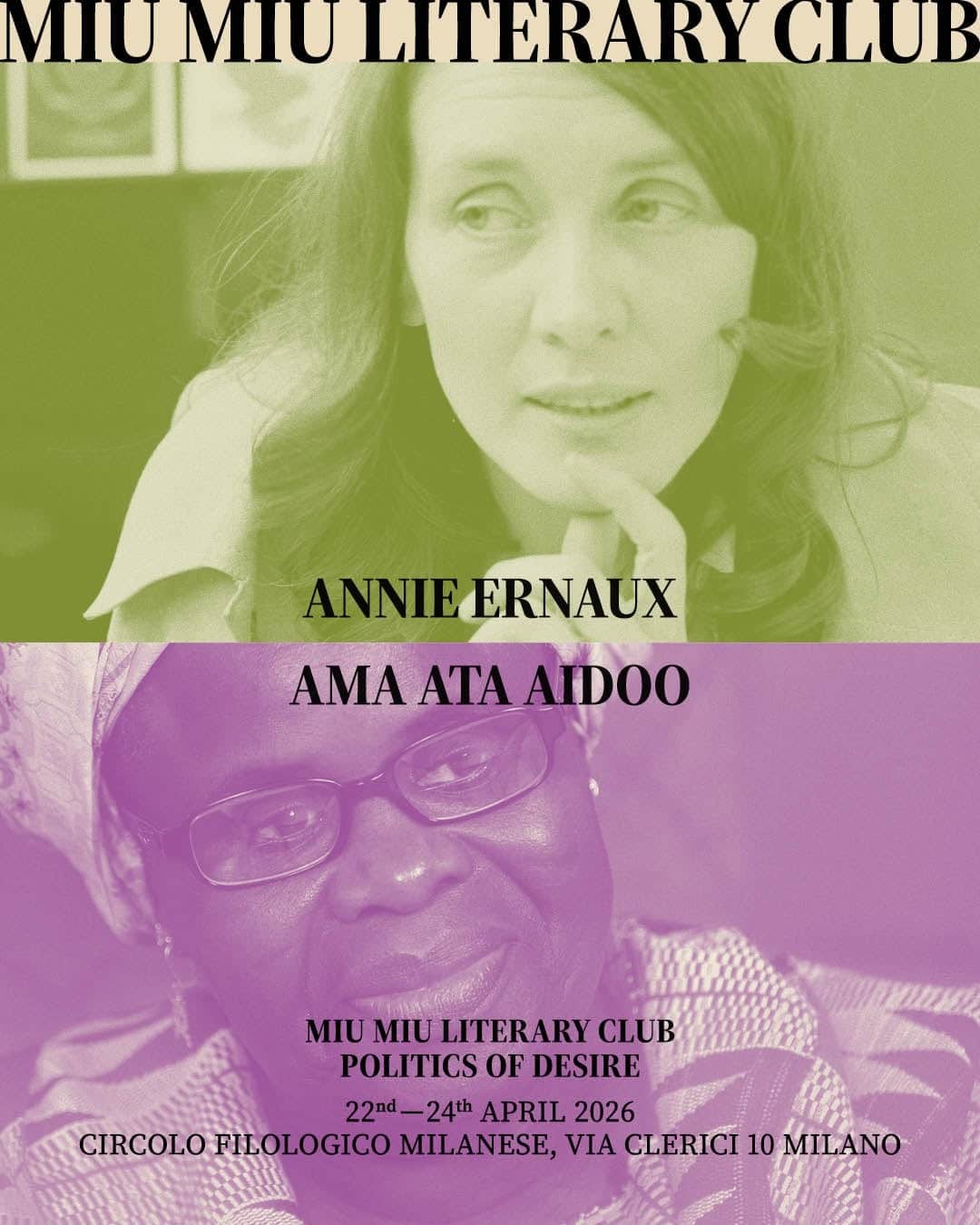 Returning to the Circolo Filologico Milanese from April 22 to 24, the Miu Miu Literary Club explores the “Politics of Desire.” The Miuccia Prada-led program features panels on Annie Ernaux and Ama Ata Aidoo, tackling themes of sexuality, consent, and autonomy.