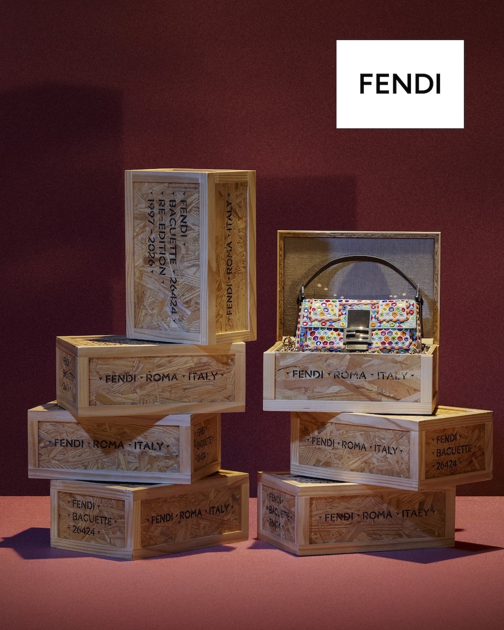 FENDI will unveil the Baguette 26424 Re-Edition at Milano Design Week 2026, celebrating the bag’s original 1997 model code. The collection debuts at Palazzo FENDI Milano with archive-inspired designs and a special installation highlighting the brand’s craftsmanship and heritage.