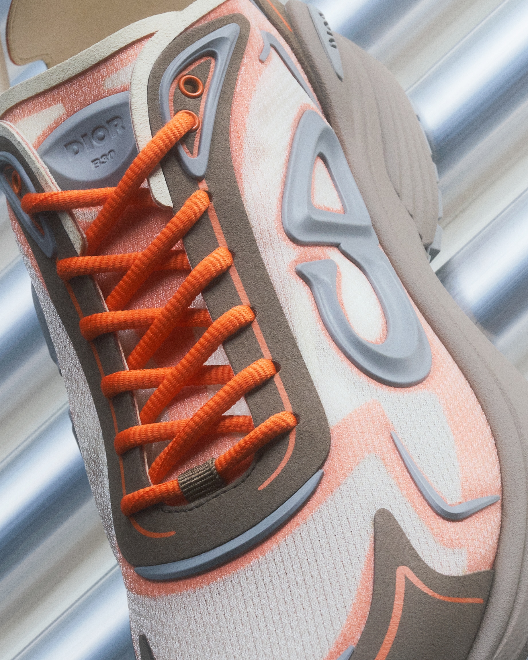 The result is a sneaker that blends confidence with versatility. It carries the energy of a running shoe but the polish of Dior tailoring. Available in five new tones – black, white, beige, green, and a vivid orange – it adapts effortlessly to any setting. It is practical enough for the street yet refined enough for the front row.