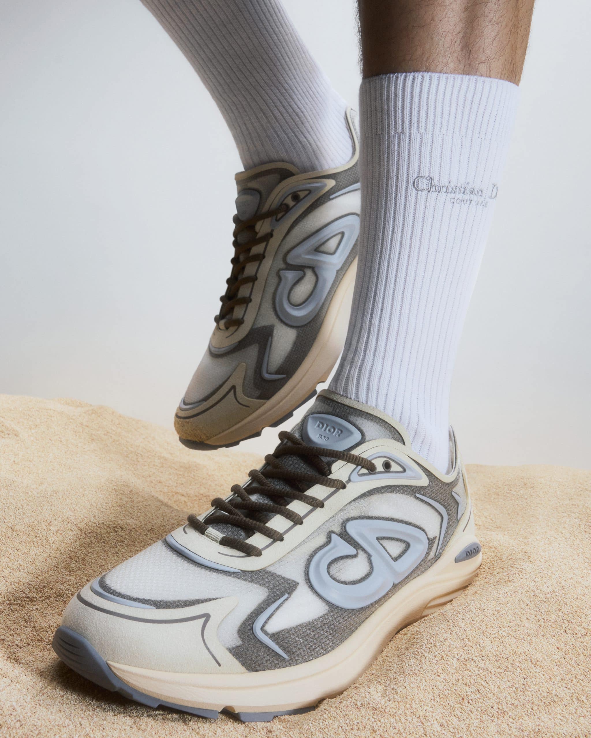 Now, the icon returns for Dior’s Spring 2026 collection. The B30 Countdown Tech Sneakers take the original spirit and rework it for a new decade. The construction is lighter yet more resilient, the shape refined yet dynamic. The upper features semi-transparent N30 nylon mixed with multi-layered microfiber and touches of rubber, creating texture and depth without unnecessary weight. The aerodynamic “CD” emblem glides across each side, while the Dior signature appears discreetly on the sole and heel. Every detail is deliberate, every finish precise.
