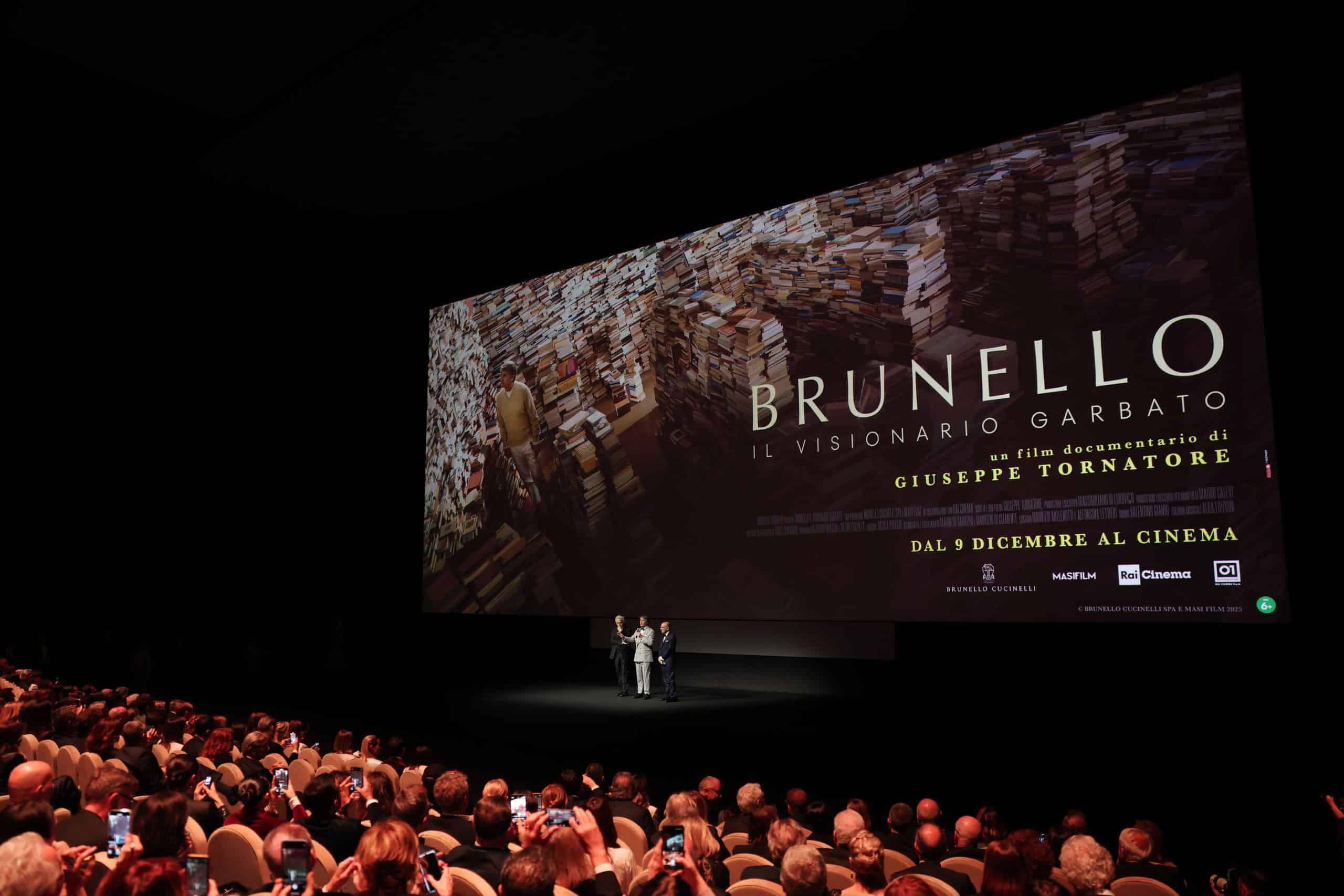 Under a crisp, December sky lit by a glowing supermoon, two thick, ivory carpets illuminated by candles weaved their way through Rome’s Cinecittà Studios, the home of Italian cinema’s golden age, to welcome stars of stage, screen, podium and catwalk to another Italian epic – the premiere of designer Brunello Cucinelli’s long-awaited docu-drama.